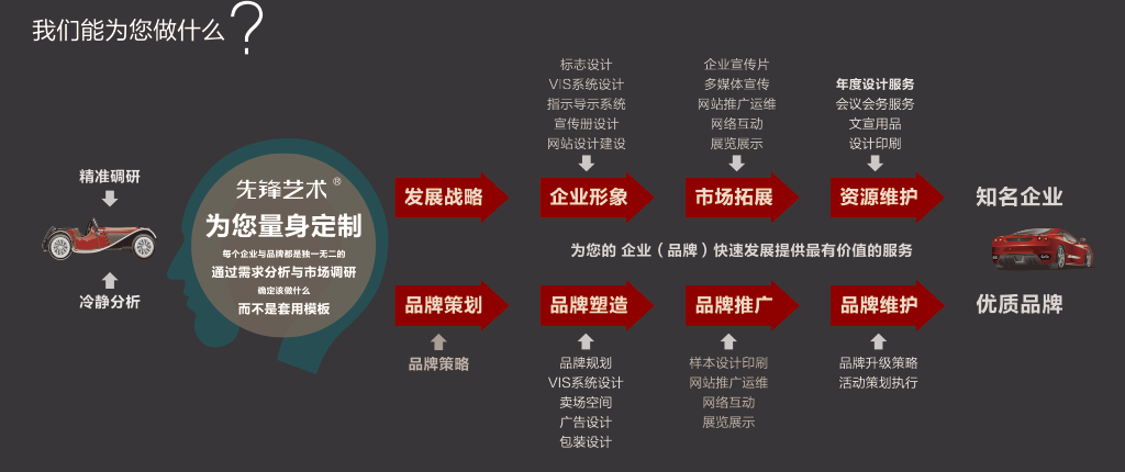 我們協(xié)助企業(yè)提升企業(yè)形象、優(yōu)化產(chǎn)品風(fēng)格、洞悉市場(chǎng)機(jī)遇、發(fā)展品牌資產(chǎn)、成就客戶價(jià)值;杜絕華而不實(shí),杜絕紙上談兵 !